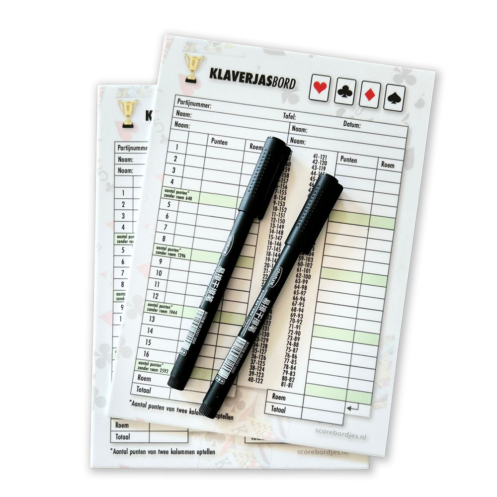 - 2x Uitwisbaar bordje om Klaverjas scores op te schrijven