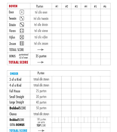 • 5 stuks Yahtzee Herbruikbare Scorebordjes